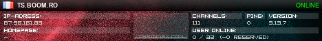 TS3index.com stellt Ihnen eine große Auswahl von verschiedenen Serverbannern bereit. Der Serverbanner zeigt den Status des TeamSpeak 3 Servers als Grafik im PNG-Format an. Kopieren Sie den Code in Ihre Website, Forum oder Blog.