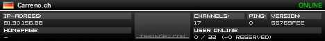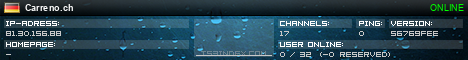 TS3index.com stellt Ihnen eine große Auswahl von verschiedenen Serverbannern bereit. Der Serverbanner zeigt den Status des TeamSpeak 3 Servers als Grafik im PNG-Format an. Kopieren Sie den Code in Ihre Website, Forum oder Blog.