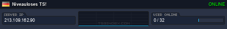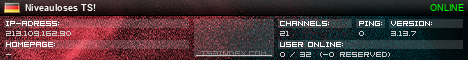TS3index.com stellt Ihnen eine große Auswahl von verschiedenen Serverbannern bereit. Der Serverbanner zeigt den Status des TeamSpeak 3 Servers als Grafik im PNG-Format an. Kopieren Sie den Code in Ihre Website, Forum oder Blog.
