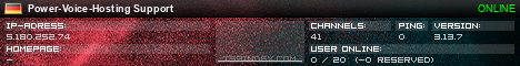 TS3index.com stellt Ihnen eine große Auswahl von verschiedenen Serverbannern bereit. Der Serverbanner zeigt den Status des TeamSpeak 3 Servers als Grafik im PNG-Format an. Kopieren Sie den Code in Ihre Website, Forum oder Blog.