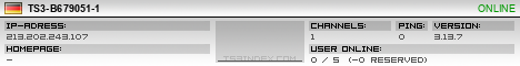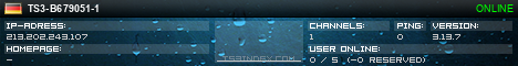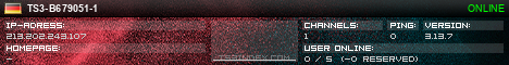 TS3index.com stellt Ihnen eine große Auswahl von verschiedenen Serverbannern bereit. Der Serverbanner zeigt den Status des TeamSpeak 3 Servers als Grafik im PNG-Format an. Kopieren Sie den Code in Ihre Website, Forum oder Blog.