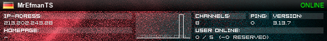 TS3index.com gives you access to a large amount of customizable server banner choices, from slim to skyscraper sizes. Copy and paste the code into your website, forum or blog.