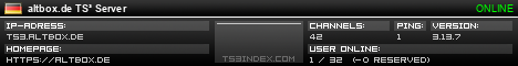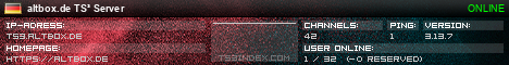 TS3index.com gives you access to a large amount of customizable server banner choices, from slim to skyscraper sizes. Copy and paste the code into your website, forum or blog.