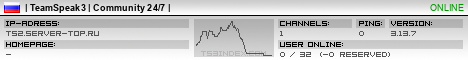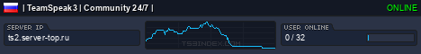TS3index.com stellt Ihnen eine große Auswahl von verschiedenen Serverbannern bereit. Der Serverbanner zeigt den Status des TeamSpeak 3 Servers als Grafik im PNG-Format an. Kopieren Sie den Code in Ihre Website, Forum oder Blog.