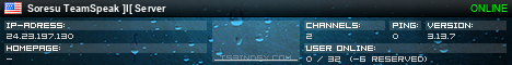 TS3index.com stellt Ihnen eine große Auswahl von verschiedenen Serverbannern bereit. Der Serverbanner zeigt den Status des TeamSpeak 3 Servers als Grafik im PNG-Format an. Kopieren Sie den Code in Ihre Website, Forum oder Blog.