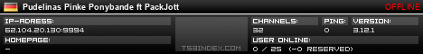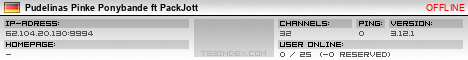 TS3index.com stellt Ihnen eine große Auswahl von verschiedenen Serverbannern bereit. Der Serverbanner zeigt den Status des TeamSpeak 3 Servers als Grafik im PNG-Format an. Kopieren Sie den Code in Ihre Website, Forum oder Blog.