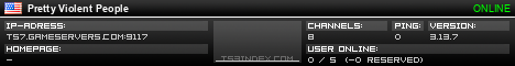 TS3index.com stellt Ihnen eine große Auswahl von verschiedenen Serverbannern bereit. Der Serverbanner zeigt den Status des TeamSpeak 3 Servers als Grafik im PNG-Format an. Kopieren Sie den Code in Ihre Website, Forum oder Blog.