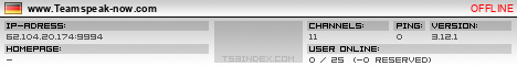 Welcome to www.Teamspeak-Now.com.Der Scan für diesen Server ist deaktiviert.