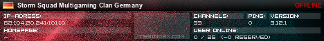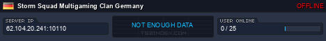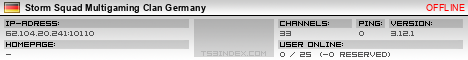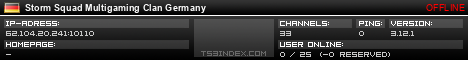 TS3index.com stellt Ihnen eine große Auswahl von verschiedenen Serverbannern bereit. Der Serverbanner zeigt den Status des TeamSpeak 3 Servers als Grafik im PNG-Format an. Kopieren Sie den Code in Ihre Website, Forum oder Blog.