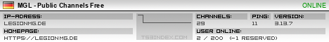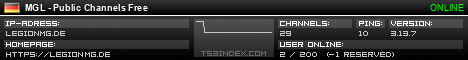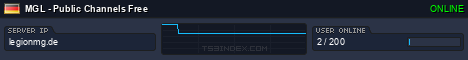 TS3index.com stellt Ihnen eine große Auswahl von verschiedenen Serverbannern bereit. Der Serverbanner zeigt den Status des TeamSpeak 3 Servers als Grafik im PNG-Format an. Kopieren Sie den Code in Ihre Website, Forum oder Blog.