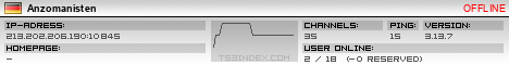 TS3index.com stellt Ihnen eine große Auswahl von verschiedenen Serverbannern bereit. Der Serverbanner zeigt den Status des TeamSpeak 3 Servers als Grafik im PNG-Format an. Kopieren Sie den Code in Ihre Website, Forum oder Blog.