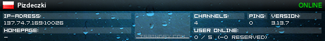 TS3index.com stellt Ihnen eine große Auswahl von verschiedenen Serverbannern bereit. Der Serverbanner zeigt den Status des TeamSpeak 3 Servers als Grafik im PNG-Format an. Kopieren Sie den Code in Ihre Website, Forum oder Blog.