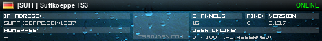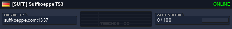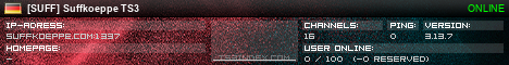 TS3index.com stellt Ihnen eine große Auswahl von verschiedenen Serverbannern bereit. Der Serverbanner zeigt den Status des TeamSpeak 3 Servers als Grafik im PNG-Format an. Kopieren Sie den Code in Ihre Website, Forum oder Blog.