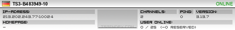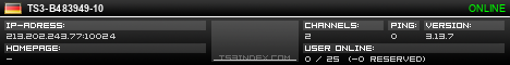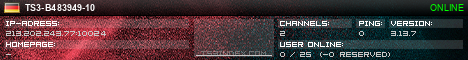 TS3index.com stellt Ihnen eine große Auswahl von verschiedenen Serverbannern bereit. Der Serverbanner zeigt den Status des TeamSpeak 3 Servers als Grafik im PNG-Format an. Kopieren Sie den Code in Ihre Website, Forum oder Blog.