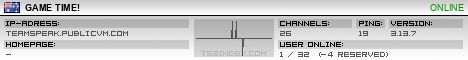 TS3index.com stellt Ihnen eine große Auswahl von verschiedenen Serverbannern bereit. Der Serverbanner zeigt den Status des TeamSpeak 3 Servers als Grafik im PNG-Format an. Kopieren Sie den Code in Ihre Website, Forum oder Blog.
