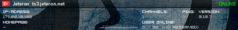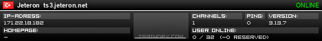 TS3index.com stellt Ihnen eine große Auswahl von verschiedenen Serverbannern bereit. Der Serverbanner zeigt den Status des TeamSpeak 3 Servers als Grafik im PNG-Format an. Kopieren Sie den Code in Ihre Website, Forum oder Blog.