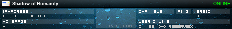 TS3index.com stellt Ihnen eine große Auswahl von verschiedenen Serverbannern bereit. Der Serverbanner zeigt den Status des TeamSpeak 3 Servers als Grafik im PNG-Format an. Kopieren Sie den Code in Ihre Website, Forum oder Blog.