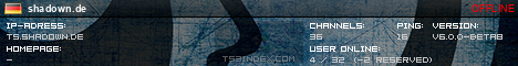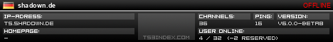 TS3index.com stellt Ihnen eine große Auswahl von verschiedenen Serverbannern bereit. Der Serverbanner zeigt den Status des TeamSpeak 3 Servers als Grafik im PNG-Format an. Kopieren Sie den Code in Ihre Website, Forum oder Blog.