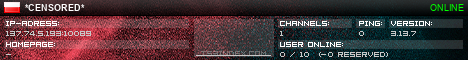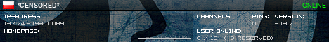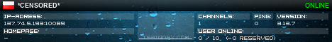 TS3index.com stellt Ihnen eine große Auswahl von verschiedenen Serverbannern bereit. Der Serverbanner zeigt den Status des TeamSpeak 3 Servers als Grafik im PNG-Format an. Kopieren Sie den Code in Ihre Website, Forum oder Blog.
