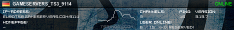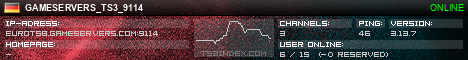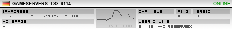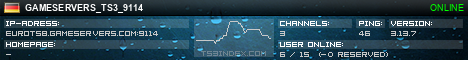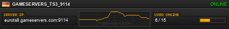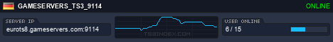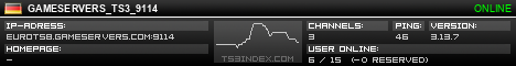 TS3index.com stellt Ihnen eine große Auswahl von verschiedenen Serverbannern bereit. Der Serverbanner zeigt den Status des TeamSpeak 3 Servers als Grafik im PNG-Format an. Kopieren Sie den Code in Ihre Website, Forum oder Blog.