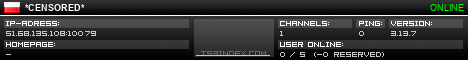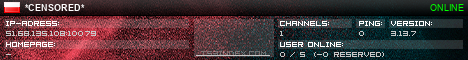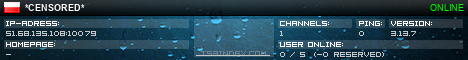 TS3index.com stellt Ihnen eine große Auswahl von verschiedenen Serverbannern bereit. Der Serverbanner zeigt den Status des TeamSpeak 3 Servers als Grafik im PNG-Format an. Kopieren Sie den Code in Ihre Website, Forum oder Blog.