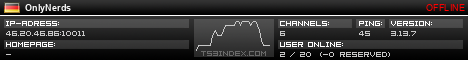 TS3index.com stellt Ihnen eine große Auswahl von verschiedenen Serverbannern bereit. Der Serverbanner zeigt den Status des TeamSpeak 3 Servers als Grafik im PNG-Format an. Kopieren Sie den Code in Ihre Website, Forum oder Blog.