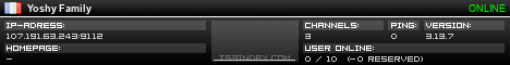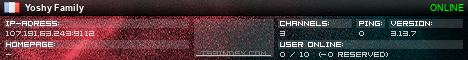 TS3index.com stellt Ihnen eine große Auswahl von verschiedenen Serverbannern bereit. Der Serverbanner zeigt den Status des TeamSpeak 3 Servers als Grafik im PNG-Format an. Kopieren Sie den Code in Ihre Website, Forum oder Blog.
