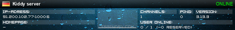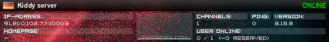 TS3index.com stellt Ihnen eine große Auswahl von verschiedenen Serverbannern bereit. Der Serverbanner zeigt den Status des TeamSpeak 3 Servers als Grafik im PNG-Format an. Kopieren Sie den Code in Ihre Website, Forum oder Blog.