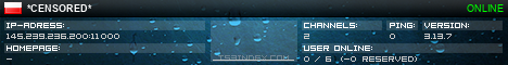 TS3index.com stellt Ihnen eine große Auswahl von verschiedenen Serverbannern bereit. Der Serverbanner zeigt den Status des TeamSpeak 3 Servers als Grafik im PNG-Format an. Kopieren Sie den Code in Ihre Website, Forum oder Blog.