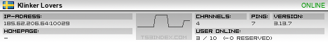 TS3index.com stellt Ihnen eine große Auswahl von verschiedenen Serverbannern bereit. Der Serverbanner zeigt den Status des TeamSpeak 3 Servers als Grafik im PNG-Format an. Kopieren Sie den Code in Ihre Website, Forum oder Blog.