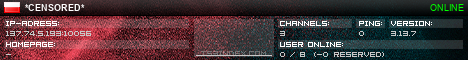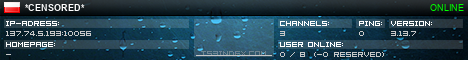 TS3index.com stellt Ihnen eine große Auswahl von verschiedenen Serverbannern bereit. Der Serverbanner zeigt den Status des TeamSpeak 3 Servers als Grafik im PNG-Format an. Kopieren Sie den Code in Ihre Website, Forum oder Blog.