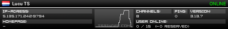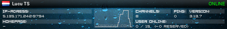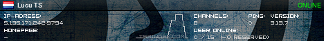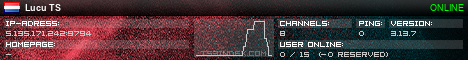 TS3index.com stellt Ihnen eine große Auswahl von verschiedenen Serverbannern bereit. Der Serverbanner zeigt den Status des TeamSpeak 3 Servers als Grafik im PNG-Format an. Kopieren Sie den Code in Ihre Website, Forum oder Blog.