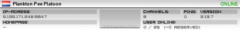 TS3index.com stellt Ihnen eine große Auswahl von verschiedenen Serverbannern bereit. Der Serverbanner zeigt den Status des TeamSpeak 3 Servers als Grafik im PNG-Format an. Kopieren Sie den Code in Ihre Website, Forum oder Blog.