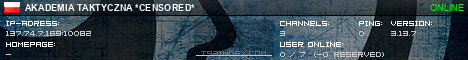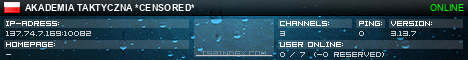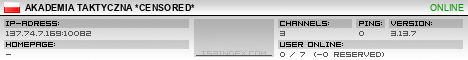 TS3index.com stellt Ihnen eine große Auswahl von verschiedenen Serverbannern bereit. Der Serverbanner zeigt den Status des TeamSpeak 3 Servers als Grafik im PNG-Format an. Kopieren Sie den Code in Ihre Website, Forum oder Blog.