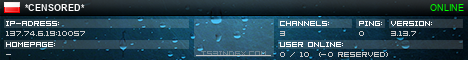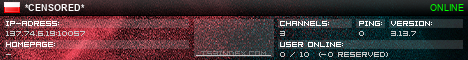 TS3index.com stellt Ihnen eine große Auswahl von verschiedenen Serverbannern bereit. Der Serverbanner zeigt den Status des TeamSpeak 3 Servers als Grafik im PNG-Format an. Kopieren Sie den Code in Ihre Website, Forum oder Blog.