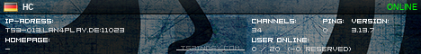 TS3index.com stellt Ihnen eine große Auswahl von verschiedenen Serverbannern bereit. Der Serverbanner zeigt den Status des TeamSpeak 3 Servers als Grafik im PNG-Format an. Kopieren Sie den Code in Ihre Website, Forum oder Blog.
