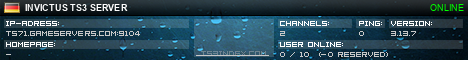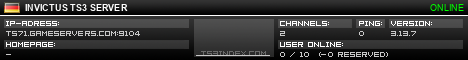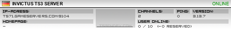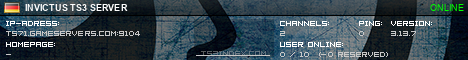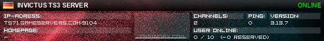 TS3index.com stellt Ihnen eine große Auswahl von verschiedenen Serverbannern bereit. Der Serverbanner zeigt den Status des TeamSpeak 3 Servers als Grafik im PNG-Format an. Kopieren Sie den Code in Ihre Website, Forum oder Blog.